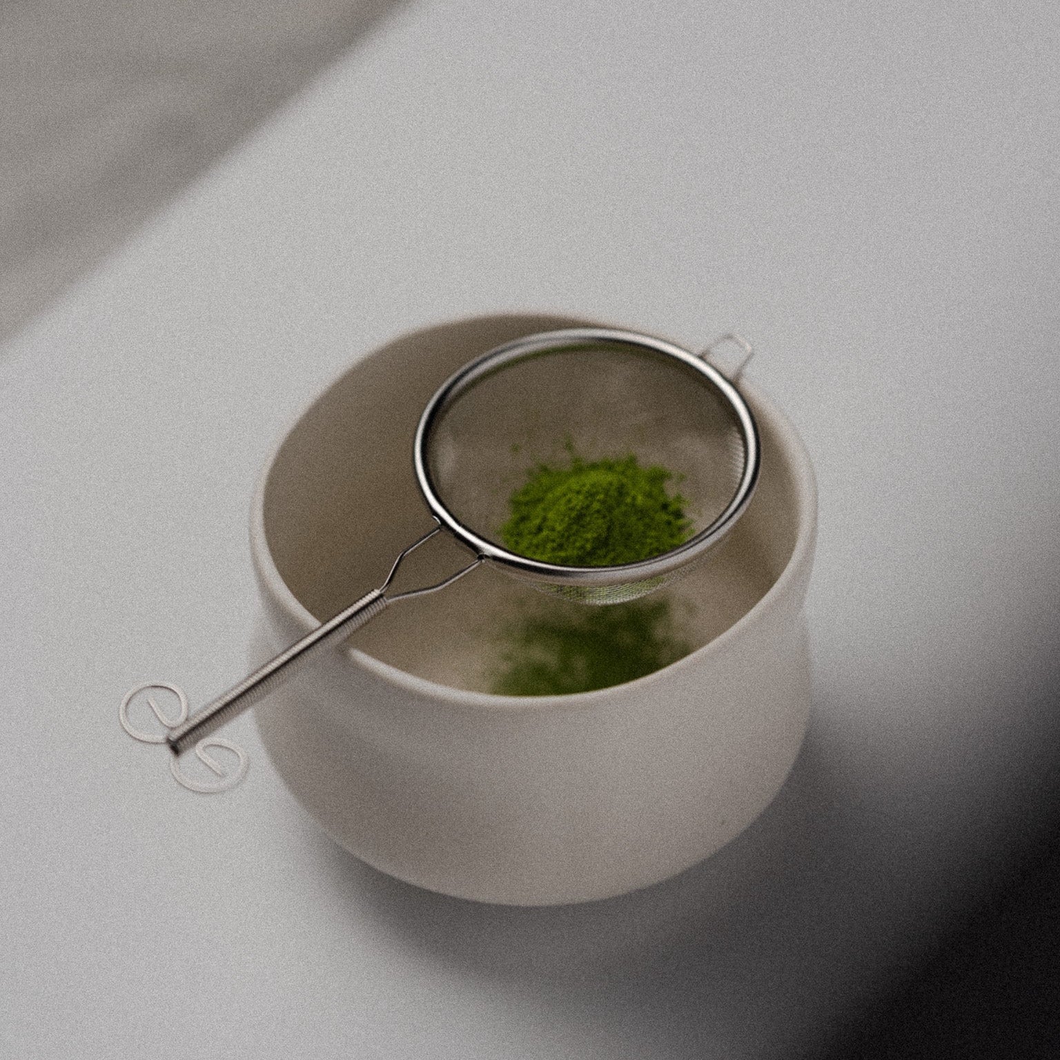 Przesianie matcha przez sitko jest niezbędne do uzyskania gładkiej, jednolitej konsystencji napoju - delikatnie rozbija i napowietrza matchę pozwalając w pełni wydobyć jej intensywny kolor, aksamitną teksturę oraz głębię smaku.